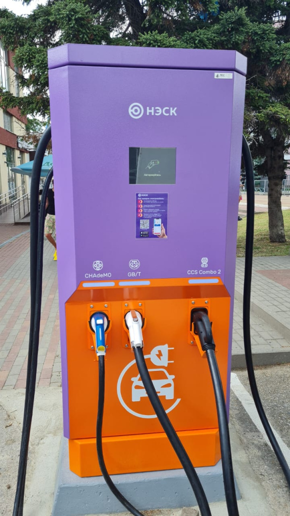 Каждая ЭЗС оснащена тремя видами коннекторов: CHAdeMO, CCS, GBT. Это единственный в мире опыт, когда на ЭЗС используются три вида коннекторов. Они предназначены для разных типов электромобилей (CHAdeMO – японский стандарт, CCS – европейский разъем, GBT – китайский стандарт).