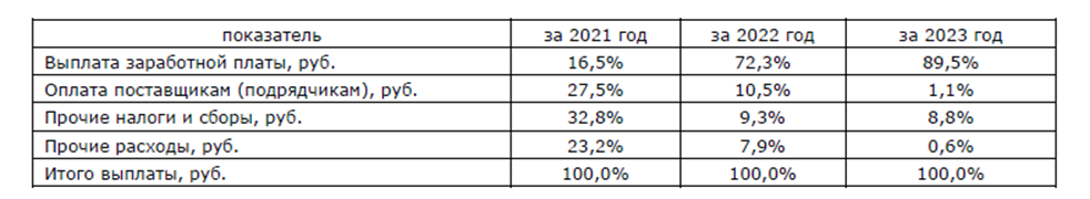 Как следует из финансового анализа должника, проведенного временным управляющим, в 2022-2023 гг. произошло резкое увеличение расходов на выплату заработной платы при одновременном тотальном сокращении оплаты ресурсоснабжающим обслуживающим организациям: