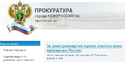 Такое предупреждение размещено 22 марта 2019 года на официальном сайте прокуратуры г. Новороссийска в связи с обращением филиала АО «НЭСК» «Новороссийскэнергосбыт» по факту отказа отдельных жителей города, называющих себя членами некой организации «Профсоюз «Союза ССР», оплачивать за потребленную электроэнергию.